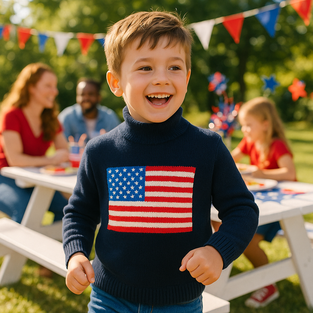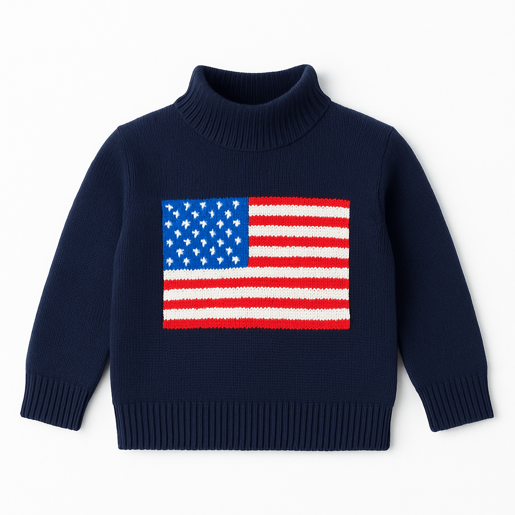 MURRAY'S TOGGERY EXCLUSIVE: Our American Flag sweater is the perfect layering piece - for any season. Designed by Murray's Toggery Shop.